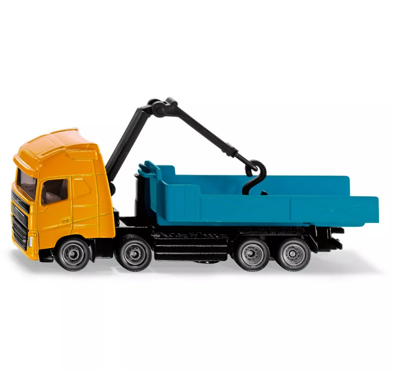 Volvo Roll-off tipper with crane 500 HP, four axles, hook-lift, and crane: The SIKU SUPER Volvo FH roll-off tipper is the multifunctional HGV for the construction site. The crane can be turned through 360 degrees, and raises heavy loads on its hook. Equipped with two stable joints, the crane can also be manoeuvred into various…