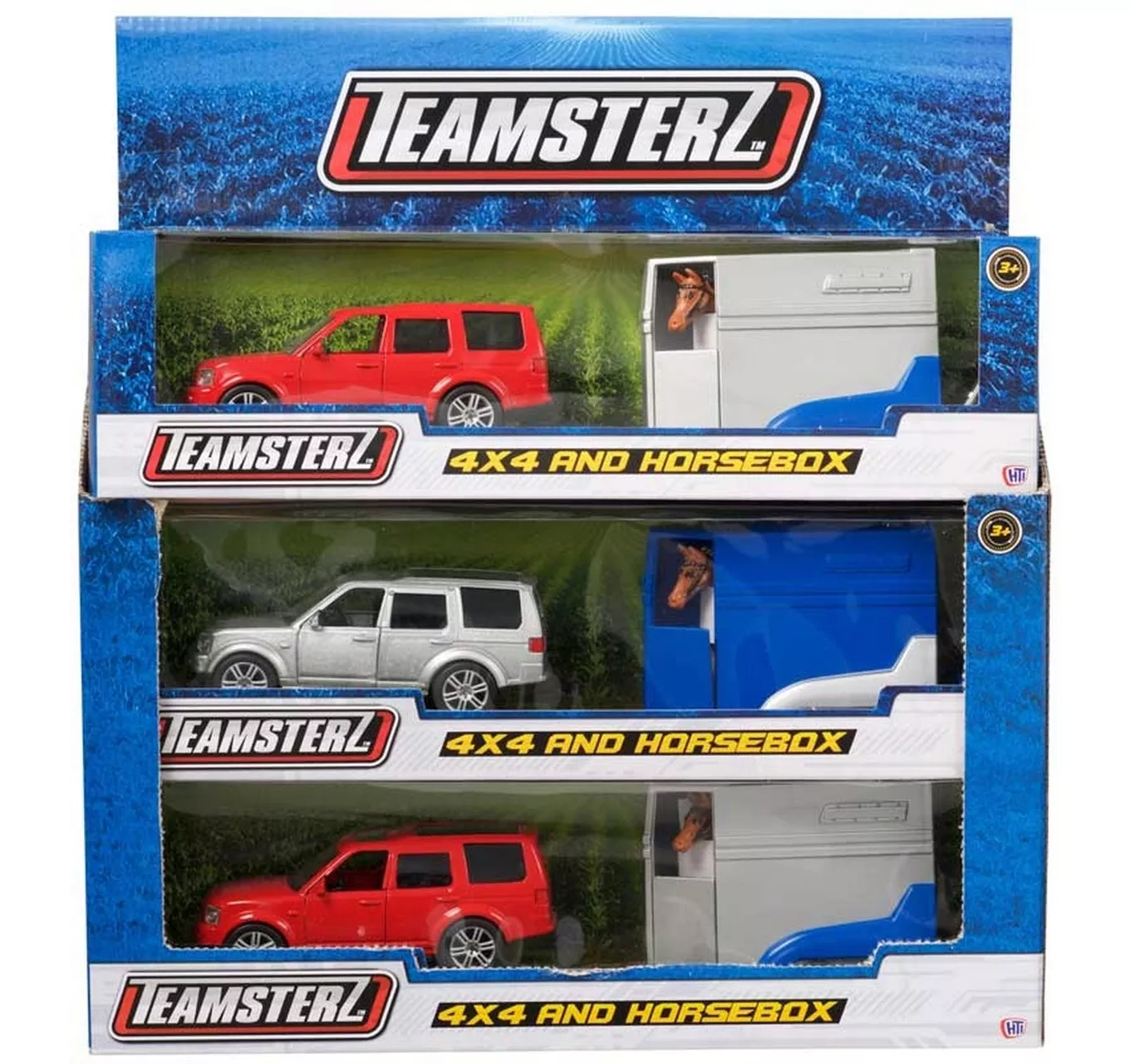 4 X 4 AND HORSE BOX – This Car and Horse Box play set from Teamsters includes a die cast car with opening doors and a horse carriage that includes a play-horse.