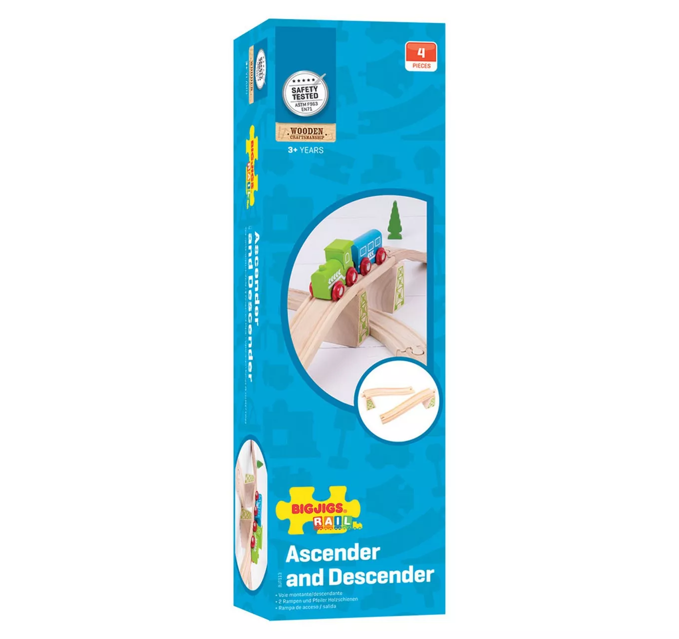Ascender/Descender. Additional wooden track and accessories allow a Bigjigs Rail network to be extended and tailored for each play session, helping to develop imaginative play sessions. Consists of 4 play pieces. Most other major wooden railway brands are compatible with Bigjigs Rail. Made from high quality, responsibly sourced materials. Conforms to current European safety standards. Age 3+ years.