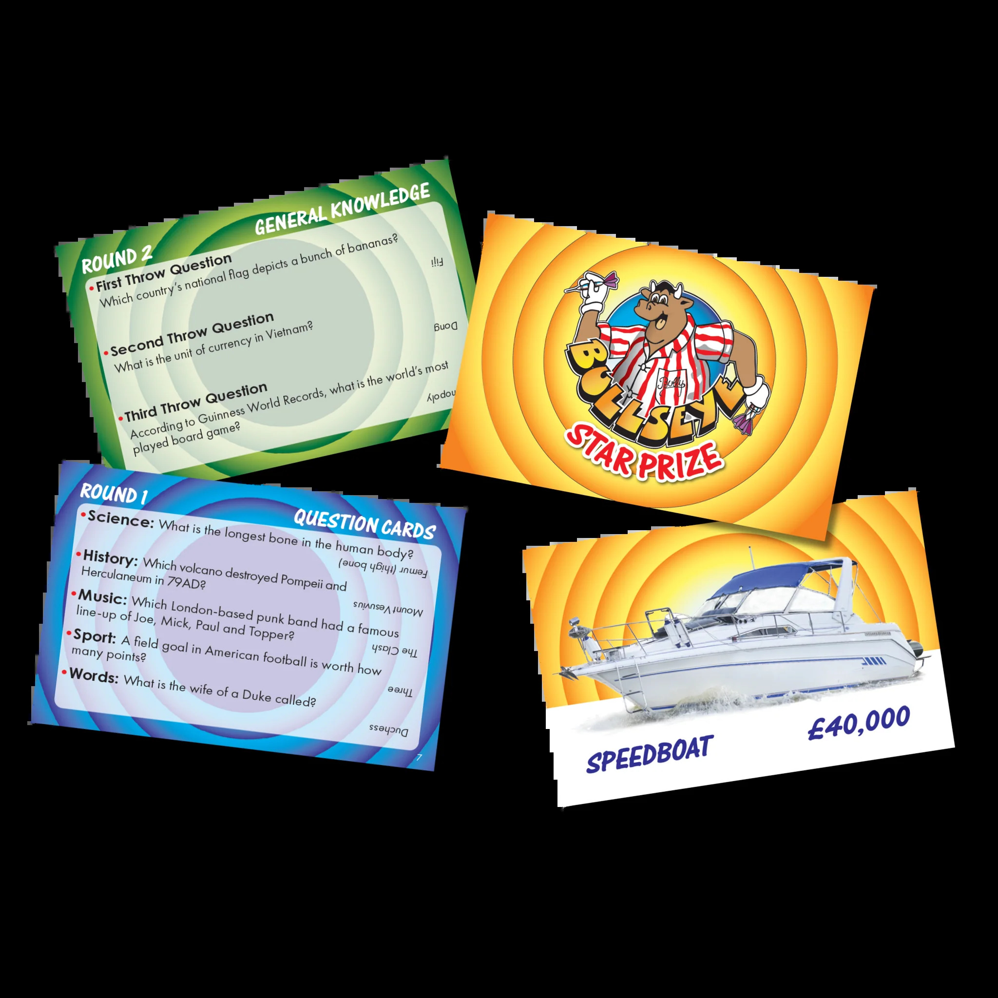Bullseye The Mini Game Step into the exciting world of the classic TV game show with Bullseye The Mini Game! This compact card game perfectly captures all the thrilling elements of the beloved darts quiz program, making it an ideal choice for family game nights or a fun travel companion. The game features innovative ‘darts…