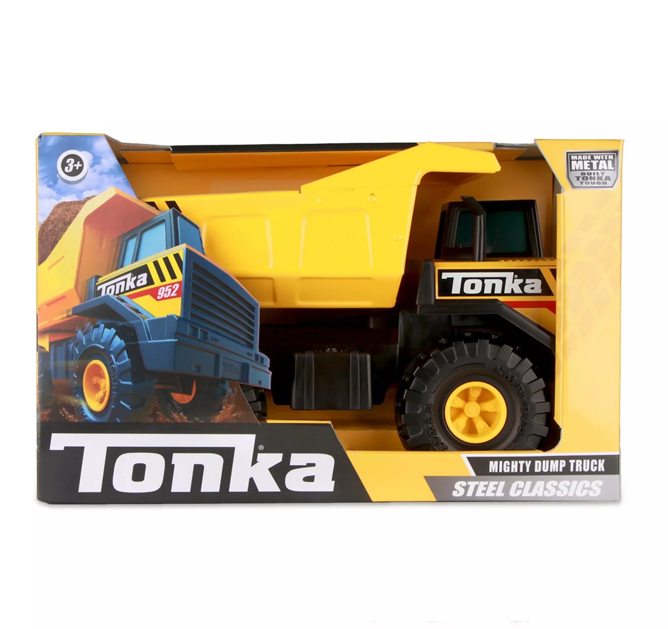The Tonka Steel Classics Mighty Dump Truck is built for hauling! This sturdy, steel construction vehicle is ready for the toughest loading jobs. Move the bed up and down to trigger its unloading action! Constructed Tonka tough with real Steel! Suitable for ages 3 years and up.