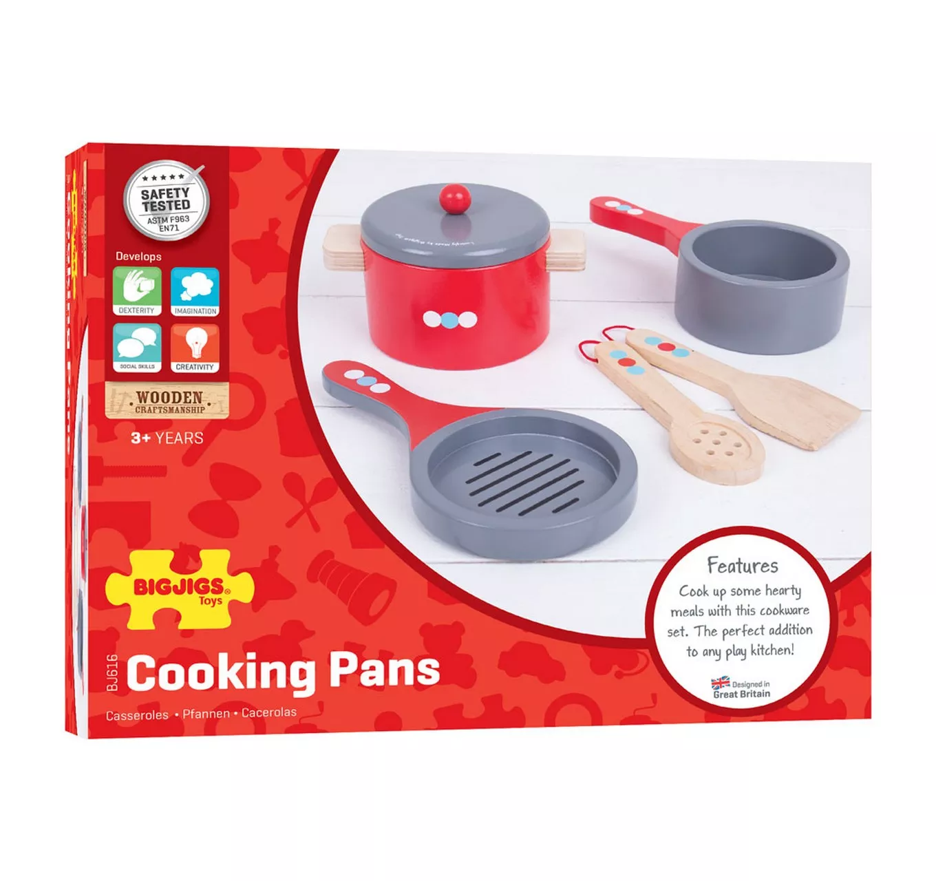 What are you cooking today? Soup? Pasta? Your youngster will be able to learn how to hold and use the cooking utensils the correct way and will soon be cooking up a family feast! This wooden playset is guaranteed to produce hours of playtime fun.