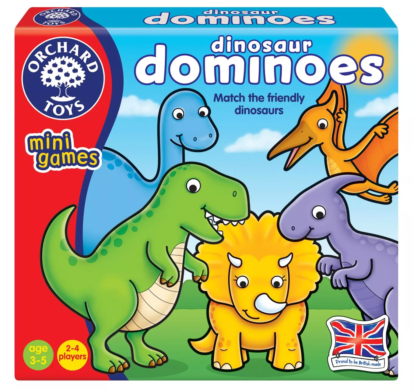 Orchard Toys Dinosaur Dominoes Mini Game Based on traditional dominoes, the aim of the game is to get rid of your cards the fastest by building a domino line! Dinosaur Dominoes develops matching and observation skills as players match the right dinosaur to the end of the domino line. Older children will also enjoy talking…