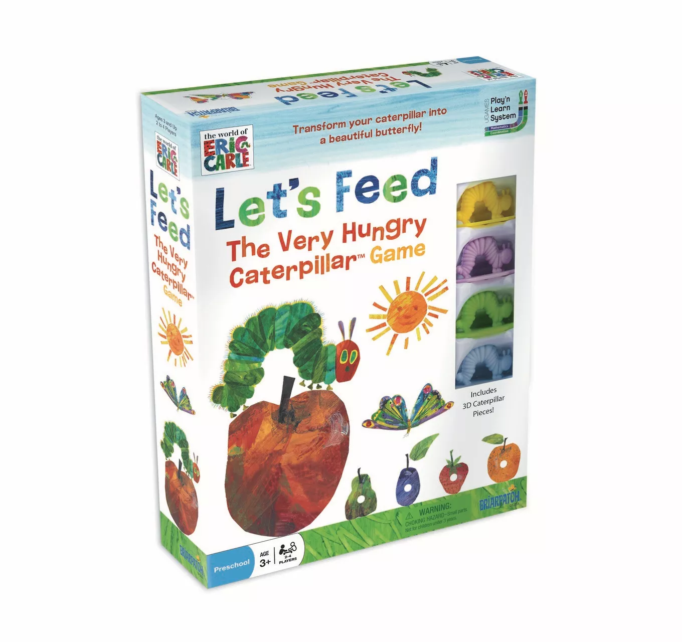 Let’s Feed the Very Hungry Caterpillar Children move colourful, 3D sculpted caterpillars from fruit to fruit, collecting a unique butterfly puzzle piece each time they stop to "eat." The first player to collect all five puzzle pieces and build a beautiful butterfly wins the game! Children practice decision-making by moving any direction on the board.…