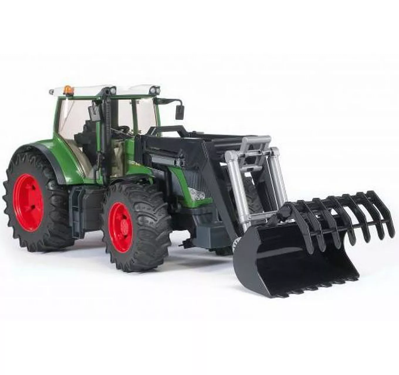 With the introduction of its 03000 series of large tractors in the autumn of 2004, BRUDER managed to establish a greatly successful product line of toy tractors that cannot be beat when it comes to functionality and aesthetics. We are now adding the Fendt 936 Vario model to this line of tractors. It has the same features as the other models of our line of large tractors, i.e. a fully glazed cabin with opening doors, a detachable front load, an off-road full floating front axle, and a height-adjustable drawbar coupling. Thanks to its unique play/steering system featuring a steering wheel that is extended through the cabin roof, this tractor can easily be handled by children despite its fully glazed cabin. This tractor can, of course, also be hooked up to all farming trailers and agricultural equipment sold by BRUDER.