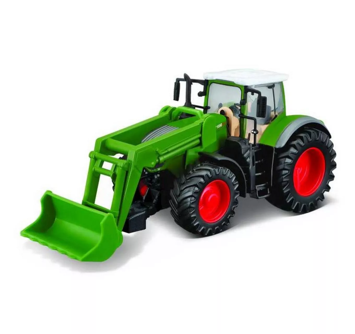 Hugely detailed model of a Fendt 1050 Vario farm tractor. The chassis and mud guard sit above four chunky wheels with authentic looking deep tread tyres. At the top of the steps is the open view cabin that features full interior details just like any other Bburago model vehicle. This model also includes a front loader accessory.
