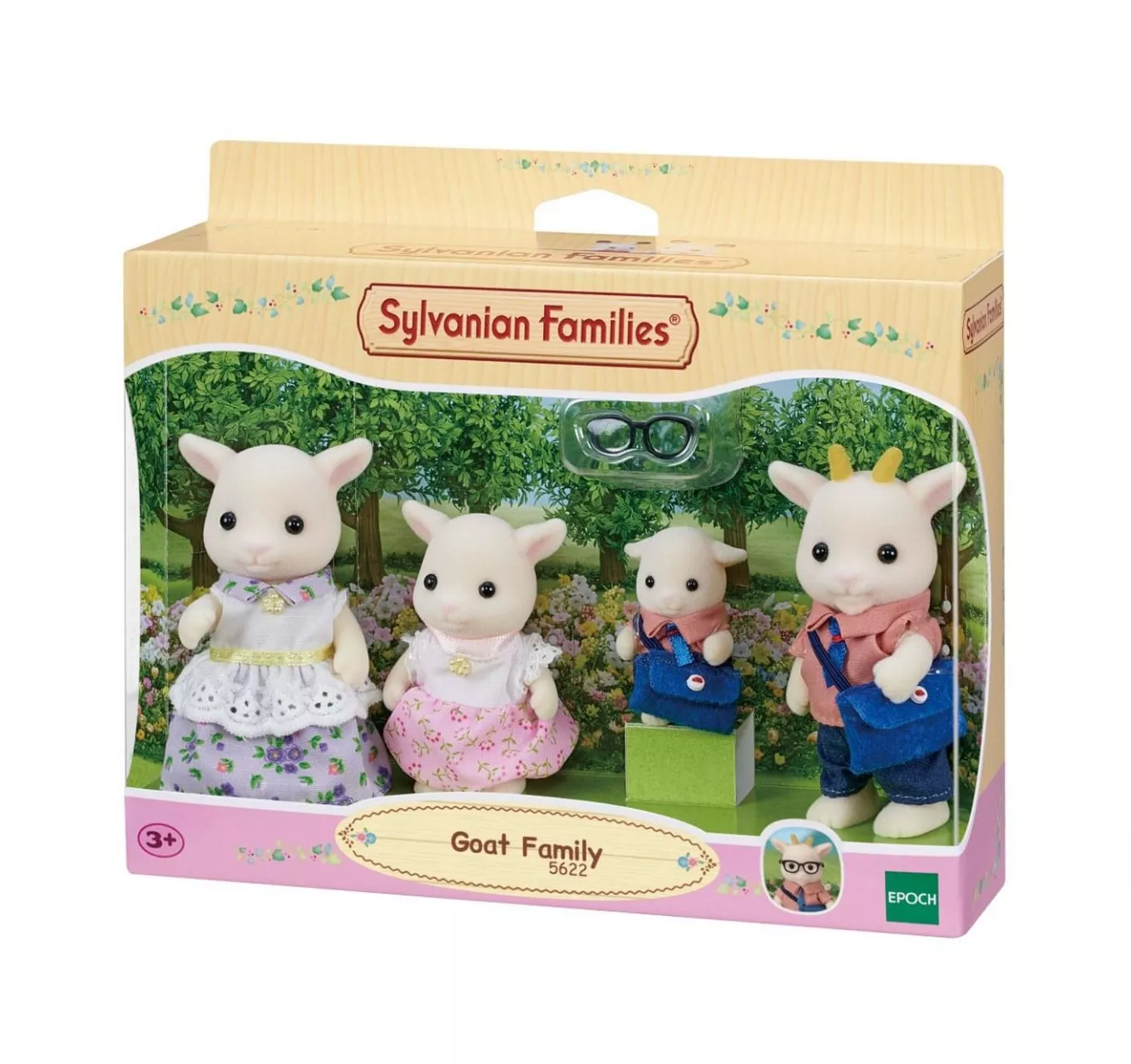The Goat Family set contains four figures: the postman Goat father Billy, mother Nancy, daughter Mandy and her baby sister Jenny. The baby and father are wearing matching outfits. The figures’ heads, arms and legs can be moved to put them in different poses. The fabric clothing can be removed to change their outfits. Suitable…