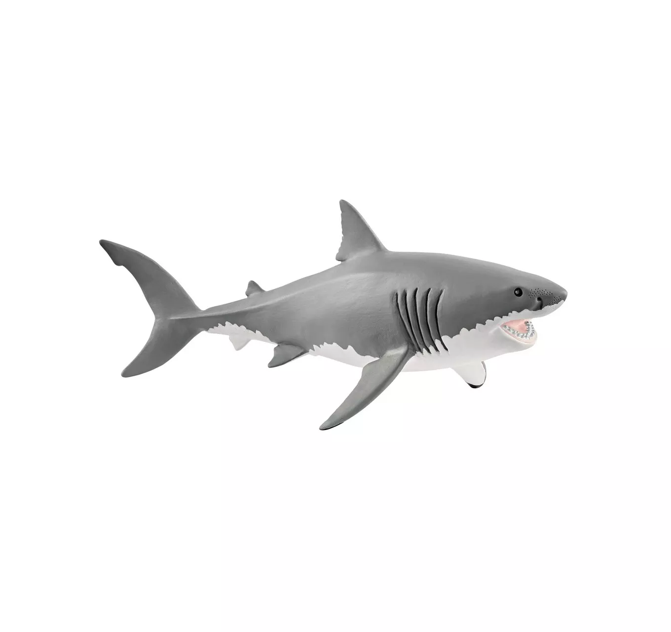 The Schleich figures are modelled with attention to detail, hand-painted with care, and provide educationally valuable playtime. The great white shark is the largest predatory fish on the planet. The way its teeth work is somewhat reminiscent of a revolver and they consist of several rows. When one of its sharp, triangular teeth breaks out of the front row, it is quickly replaced by another from the row behind it. New replacement teeth are constantly growing.