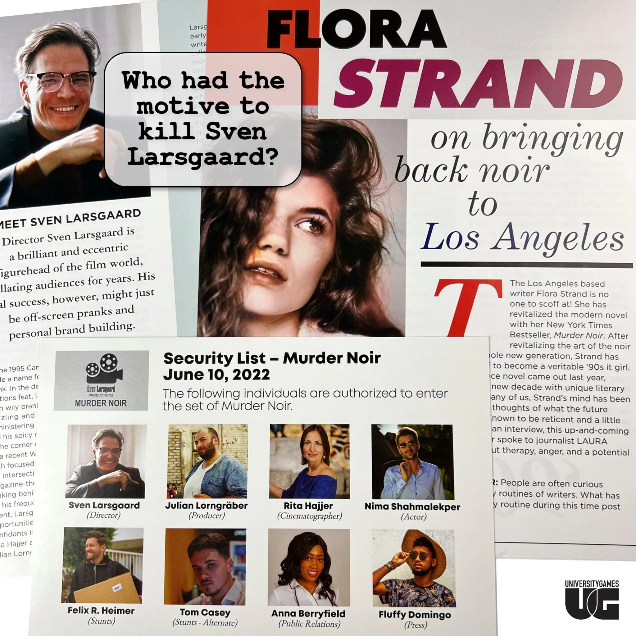 Murder Mystery Party Case Files: Murder Noir Step into the golden age of Hollywood and solve a chilling crime with Murder Mystery Party Case Files: Murder Noir. Director Sven Larsgaard is famous for his on-set pranks, but when he’s found dead on the set of his latest film, the line between joke and reality blurs.…