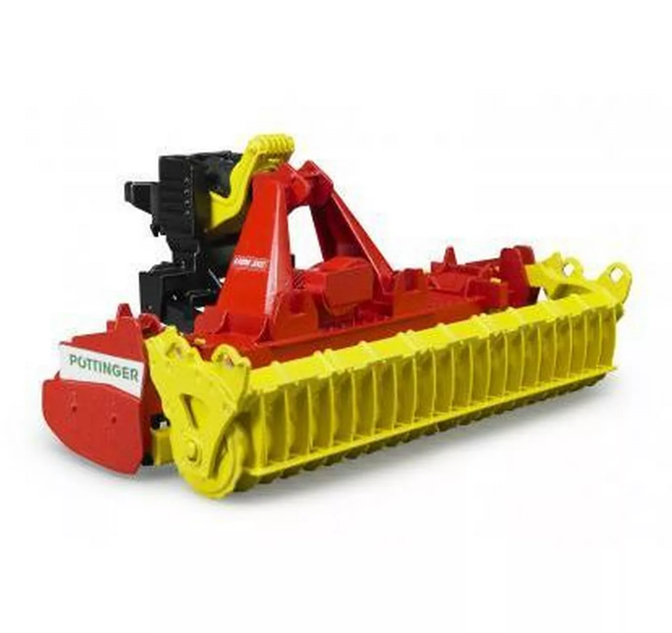 The Pöttinger Lion 3002 rotary harrow is designed for soil cultivation in agriculture and primarily used to prepare the seed bed prior to sowing. Sporting the BRUDER-specific adapter, the rotary harrow can be hitched up to all vehicles included in BRUDER’s line of tractors. Allowing them to raise and lower the unit, the integrated hoisting mechanism lets the children accurately simulate the real-world transport and working position. When operating in its working position, the harrow’s rotating pressure roller tills the soil, while numerous additional details accentuate the visual effect of the vehicle, allowing the children to play with it in an even more realistic way.