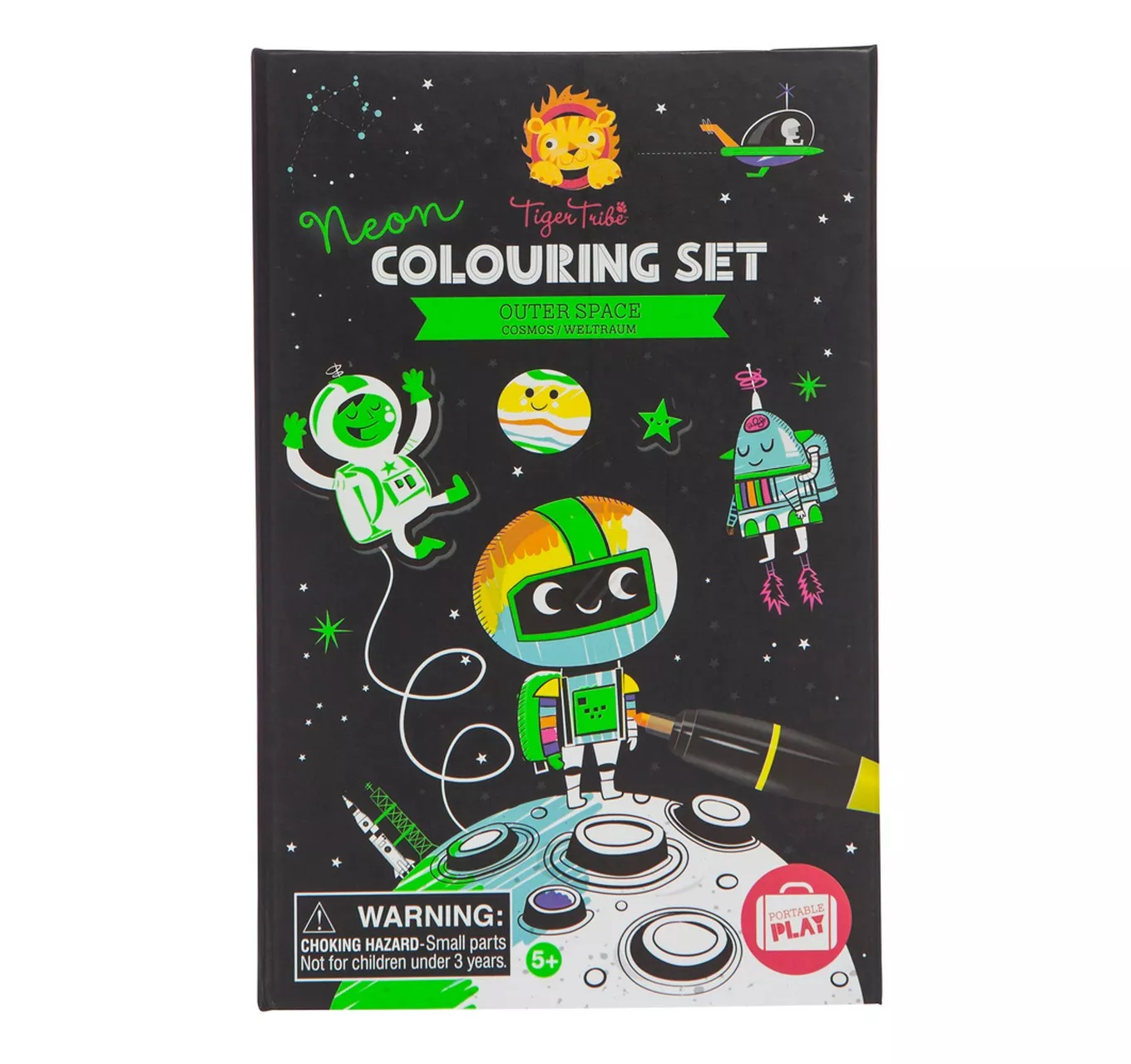 The Tiger Tribe Neon Colouring Set is ideal for developing kids’ creativity and dexterity skills as they colour in each space creature. Helps to encourage mindfulness and relaxation and is a great alternative to screen time!