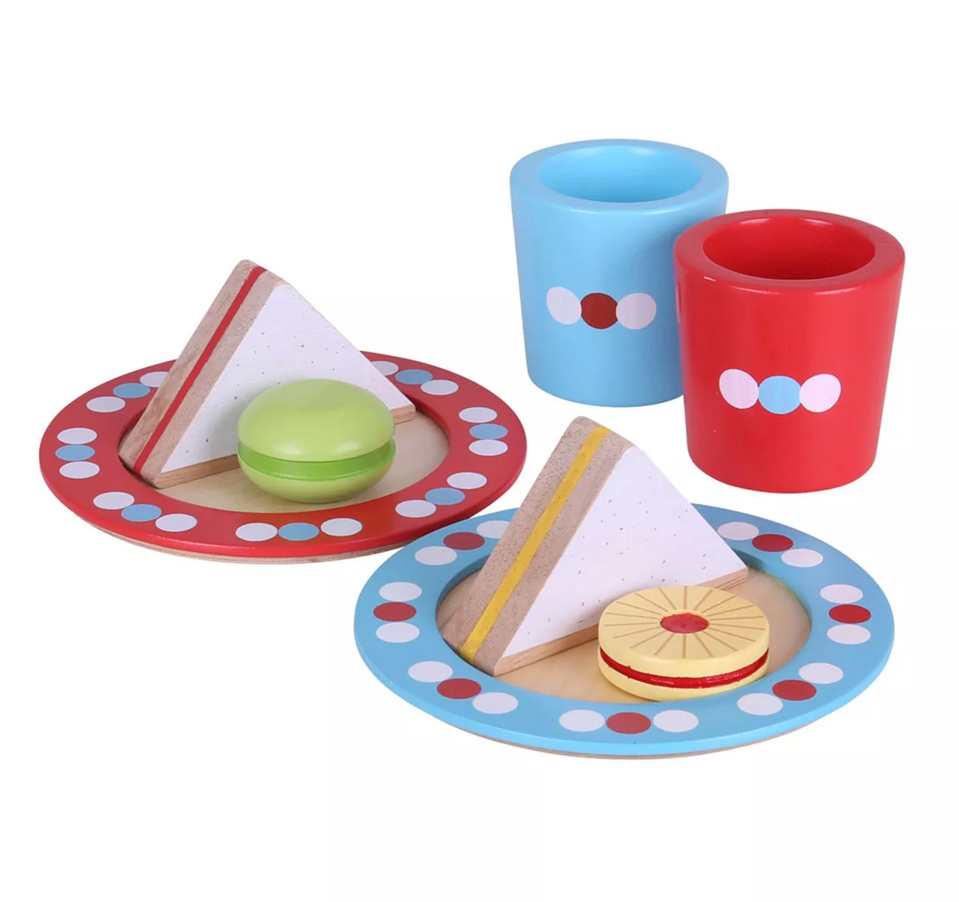 Anyone for Afternoon Tea? Share a savoury snack, a sweet treat and a cup of your favourite drink with a friend or family member with the Bigjigs Toys wooden Tea Time playset. Set includes 2 wooden plates, cups, sandwiches and 2 sweet treats. A great way to inspire creative and imaginative play sessions, and a great addition to any wooden play kitchen. Bigjigs Toys wooden Afternoon Tea playset is also a great way to develop dexterity and improve social skills from an early age. Made from high quality, responsibly sourced materials. Conforms to current European safety standards.