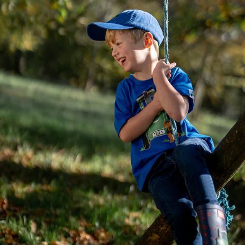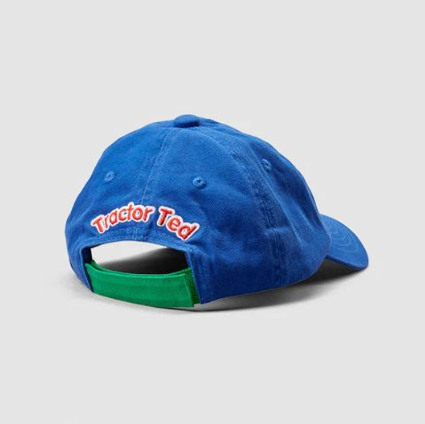 The Tractor Ted Cap is perfect when heading out and about on adventures. Tractor Ted is embroidered on the front and his name is on the back. In a blue vintage style cotton and with an adjustable contrast colour velcro strap.