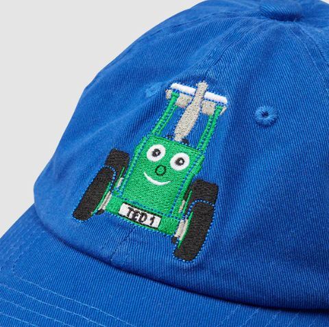 The Tractor Ted Cap is perfect when heading out and about on adventures. Tractor Ted is embroidered on the front and his name is on the back. In a blue vintage style cotton and with an adjustable contrast colour velcro strap. Blue vintage style 100% Brushed Cotton Embroidered detail Adjustable velcro strap One size, 52cm